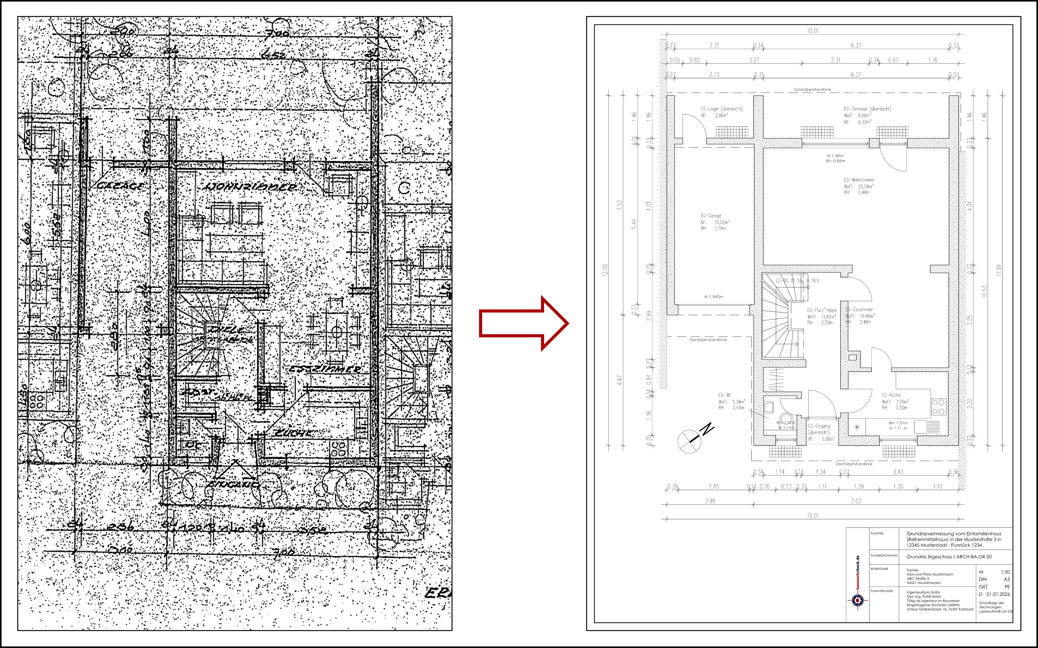 Bestandsimmobilien haben oft keine aktuellen Grundrisspläne oder eine aktuelle Flächenberechnung dazu. Diese benötigen Sie, wenn Sie z.B. eine Immobilie verkaufen oder vermieten möchten. Kreditgebende Banken verlangen bei zu alten und zu unleserlichen Plänen, ein aktuelles Aufmaß (aktuelle Grundrissvermessung) und die dazu gehörige Flächenberechnung, ermittelt nach der Wohnflächenverordnung (WoFlV) für Wohnräume und nach DIN277 für Nutz-, Verkehrs- und Technikflächen der übrigen Räume. Auch im Falle einer Vermietung, sollten korrekte Flächenangaben im Mietvertrag angegeben werden, da sonst Regressansprüche entstehen können.
