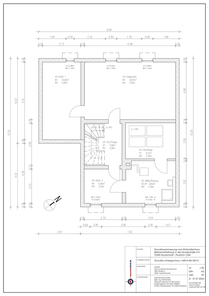 Handelt es sich um weitestgehend rechtwinklige Immobilienobjekte, welches meist bei Nachkriegsbauten der Fall ist, so können wir Ihre Immobilie für 3,50 € Netto / m² (vermessene Raum-Bodenfläche), vermessen bzw. die dazugehörigen Unterlagen (Grundrisspläne und Flächenberechnung) erstellen. Die vermessene Bodenfläche wird in der Flächenberechnung exakt ausgewiesen, so dass damit die Abrechnungsgrundlage gleich gegeben ist.